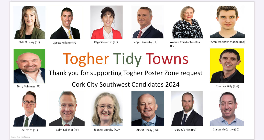 Togher Tidy Towns Committee and Volunteers would like to thank all of the attached candidates for supporting our Poster Zone Campaign.